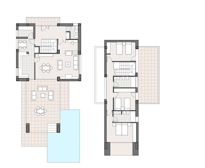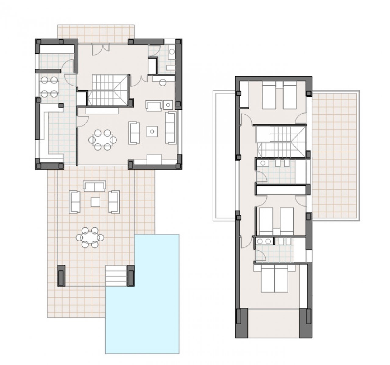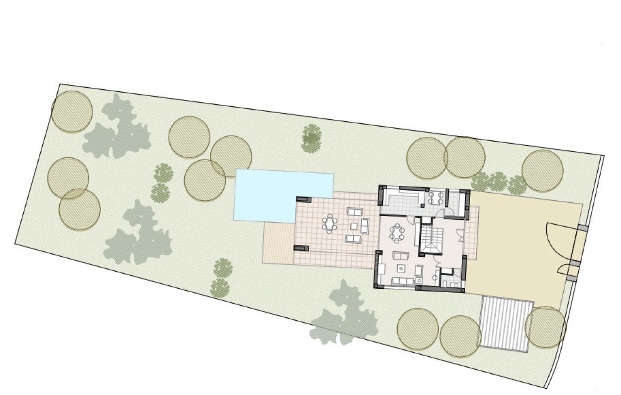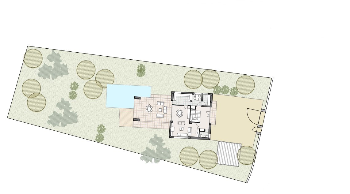 Diese Villa wird in einer sehr ruhigen, neuen Urbanisation in Javea gebaut. Die Urbanisation ist nur 2 km vom Sandstrand Arenal und 1 km vom Naturschutzgebiet Granadella entfernt. Hier gibt es mehrere Wanderwege, darunter einen bis zum idyllischen Kieselstrand Granadella. Ein großer Supermarkt ist nur 5 Autominuten entfernt. Das Haus ist auf zwei Etagen aufgeteilt. Das Erdgeschoss besteht aus einem geräumigen Wohn-Esszimmer, einer Küche, einem Hauswirtschaftsraum und einem Badezimmer. Vom Wohnzimmer aus gibt es einen direkten Zugang zur großen überdachten Terrasse. Im Obergeschoss befindet sich ein Doppelschlafzimmer mit eigenem Bad und einer privaten überdachten Terrasse. Außerdem gibt es zwei weitere Doppelschlafzimmer, die sich ein Badezimmer und eine große Terrasse teilen. Die Villa befindet sich auf einem flachen Grundstück von ca. 1000 m2 und verfügt über einen Swimmingpool und einen Garten.