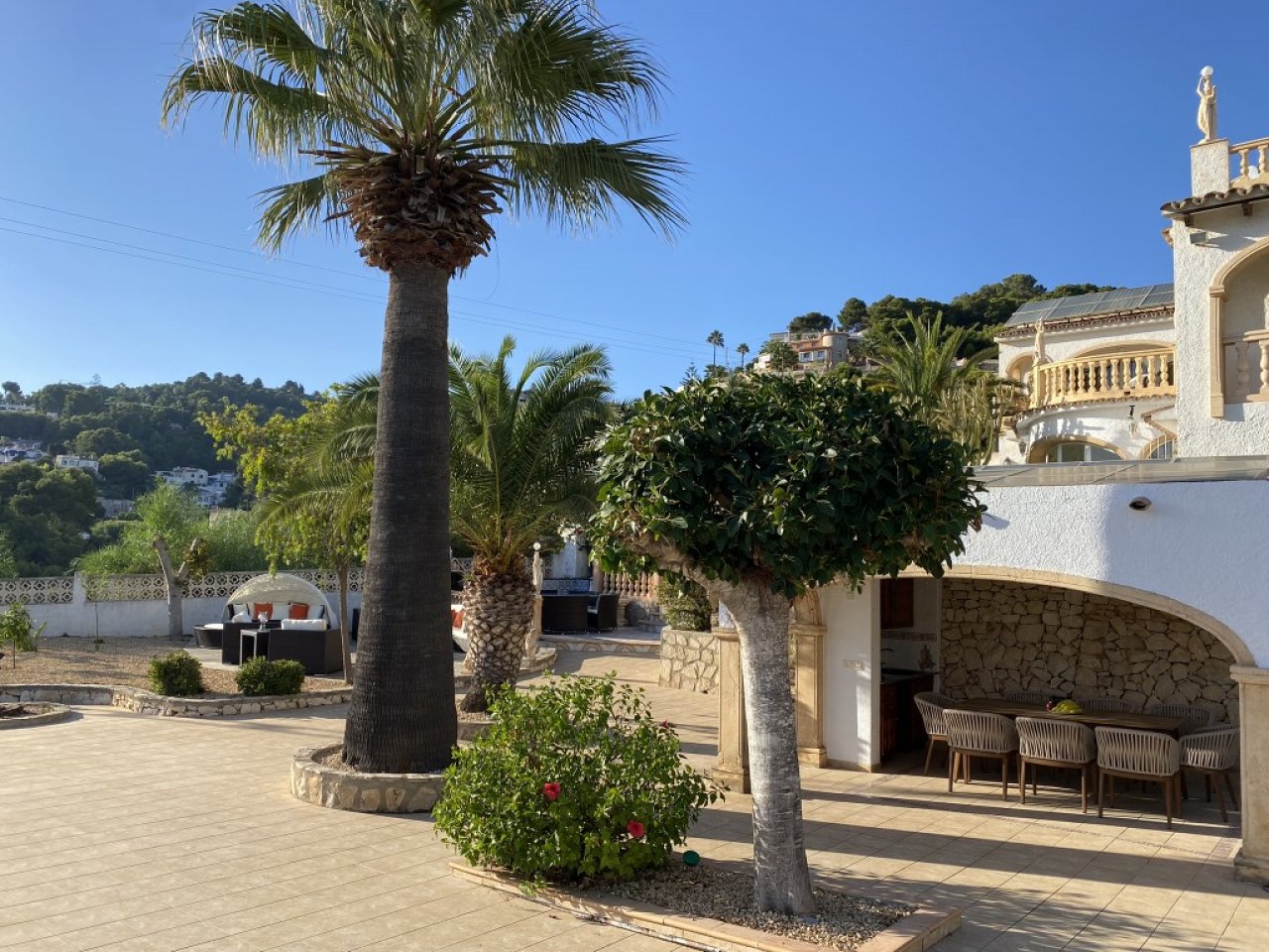 Diese sehr geräumige traditionelle spanische Villa befindet sich in ruhiger Lage in der Nähe des Golfplatzes in Moraira. Die Villa befindet sich auf einem großen Grundstück und bietet einen atemberaubenden Blick über die Landschaft und das Meer. Die Villa erstreckt sich über 2 Etagen und verfügt über insgesamt 4 geräumige Doppelzimmer und 4 Badezimmer. Darüber hinaus gibt es ein geräumiges Wohnzimmer mit Essbereich, eine voll ausgestattete Küche, ein Gäste-WC, eine Waschküche und einen Fitnessraum mit Sauna. Die Villa hat auch eine sehr geräumige Terrasse mit verschiedenen Sitzbereichen rund um das Haus, von wo aus Sie die atemberaubende Aussicht genießen können, die diese Villa zu bieten hat.