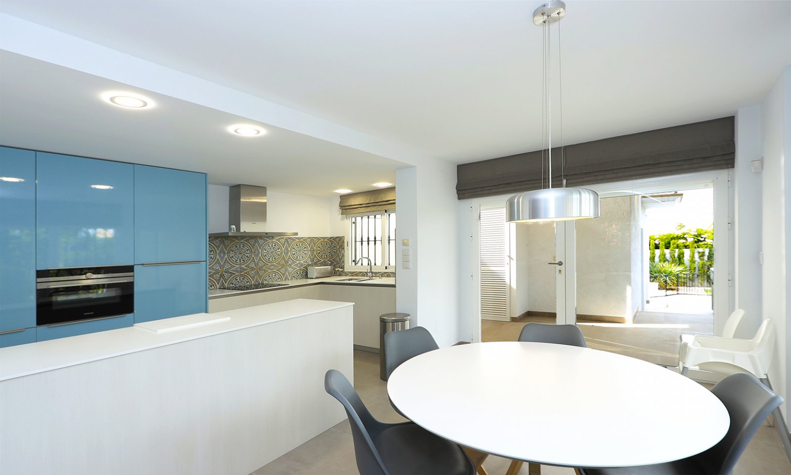 Sehr gepflegtes Einfamilienhaus auf einem Eckgrundstück in einer etablierten, ruhigen Gegend in der Nähe von Annehmlichkeiten und nur 10 Gehminuten vom Strand und der Promenade von Albir und 5 Gehminuten vom Supermarkt und Restaurants entfernt. Das Anwesen wurde 2019 sehr geschmackvoll renoviert und bietet einen weiten, offenen Bergblick. Die weitgehend im mediterranen Stil eingerichtete Villa besteht aus 2 separaten Teilen, die durch eine überdachte Terrasse verbunden sind. Insgesamt gibt es 6 Schlafzimmer, 5 Bäder und 2 Toiletten. Im Außenbereich gibt es einen 30m2 großen, beheizten Swimmingpool, einen Whirlpool, eine große Sonnenterrasse, einen Abstellraum, einen Technikraum und eine Außenküche mit Grill, die mit einem elektrischen Rollladen geschlossen ist. Das umzäunte Grundstück ist über ein Fußgängertor und ein automatisches Autotor zugänglich. Außerdem gibt es einen schönen, gepflegten Garten mit Bewässerungssystem, Obstbäumen und Kunstrasen.
