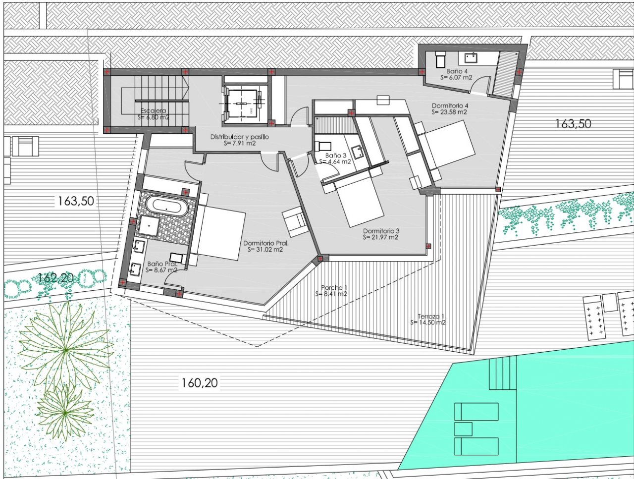 Moderne Neubauvilla mit Meerblick zum Verkauf in Raco de Galeno, ausgestattet mit allem Luxus, es gibt 4 Etagen, die durch einen Aufzug und eine Innentreppe miteinander verbunden sind. Im Erdgeschoss gibt es eine Eingangshalle mit Garderobe und Gäste-WC, ein Wohnzimmer mit voll ausgestatteter offener Küche mit Speisekammer, eine Lounge und eine zweite Sitzecke zum Fernsehen. Von diesem Raum aus können Sie nach draußen auf die 160 m² große Terrasse gehen, von der ein Teil überdacht ist. Hier finden Sie auch den Infinity-Pool mit einer flachen Zone zum Entspannen. Es gibt auch ein Schlafzimmer mit eigenem Bad. Im ersten Stock befindet sich das Hauptschlafzimmer von 40 m² mit eigenem Bad und begehbarem Kleiderschrank, außerdem gibt es zwei weitere Schlafzimmer mit eigenem Bad. Sie können das Haus im obersten Stockwerk betreten, es gibt eine Garage für 2 Autos und etwas Stauraum, die Eingangshalle mit Aufzug und Treppe und es gibt auch eine große Dachterrasse. Im Untergeschoss befindet sich ein SPA mit Innenpool, Sauna, Fitnessraum und Dusche. Außerdem gibt es ein Heimkino, einen Hauswirtschaftsraum, eine Toilette und einen großen Raum zum Entspannen. Draußen gibt es einen wunderschönen mediterranen Garten mit vielen Natursteinmauern.