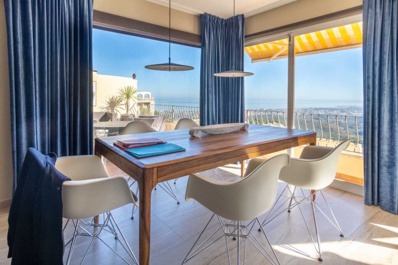 Diese wunderschöne Villa bietet einen atemberaubenden Blick auf das Mittelmeer und die Berge. Verteilt auf drei Etagen, das Erdgeschoss, auf Straßenniveau, beherbergt den Hauptwohnbereich, der ein geräumiges Wohnzimmer, eine voll ausgestattete Küche mit Insel, 3 Schlafzimmer und ein komplettes Bad en suite hat. Über eine Außentreppe gelangt man in das Obergeschoss, wo sich ein geräumiges Schlafzimmer mit eigenem Bad und eine Terrasse mit Panoramablick befinden, was diesen Raum zu einem idealen Ort für Unterhaltung, Entspannung oder auch als Arbeitsbereich macht. Über dieselbe Treppe gelangt man auch in die untere Etage, wo sich der Swimmingpool und der Chill-out-Bereich befinden. Hier gibt es eine Waschküche neben einem Schlafzimmer, das derzeit leer steht und zahlreiche Möglichkeiten als Fitnessraum, Weinkeller, Lagerraum oder was auch immer Sie benötigen, bietet.…