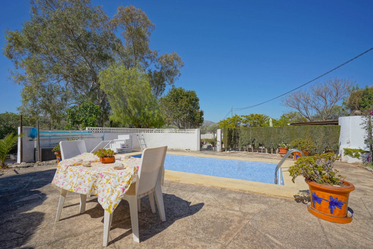 Diese traditionelle Villa befindet sich auf einem flachen, sonnigen Grundstück von 1000 M2 und bietet einen schönen Blick auf die bewaldeten Hügel hinter Javea. Die Villa ist nach Süden ausgerichtet und erstreckt sich über zwei Etagen. Sie betreten eine sehr geräumige Naya, von wo aus Sie Zugang zum Wohn-Esszimmer mit Bar haben. Das Wohn- und Esszimmer zeichnet sich durch die traditionellen Bögen aus Tosca-Stein und die hohe Decke aus. Angrenzend befindet sich eine geräumige, moderne Küche. Vom Wohnzimmer aus hat man Zugang zu einem zweiten Wohnzimmer, von dem aus eine Treppe in das Obergeschoss führt. Neben der Treppe befindet sich ein Einzelzimmer. Im Obergeschoss befinden sich ein Doppelschlafzimmer mit eigenem Bad und ein Einzelschlafzimmer. Im Erdgeschoss befinden sich außerdem ein Gäste-WC und ein Abstellraum. Die Villa verfügt über einen Swimmingpool und einen großen Parkplatz. Auf dem Grundstück gibt es auch mehrere Obstbäume, darunter ein Zitronenbaum, 2 Orangenbäume, ein Granatapfelbaum, ein Mandelbaum und ein Feigenbaum. Das Stadtzentrum von Javea kann in weniger als 10 Minuten erreicht werden. Die Villa verfügte über eine Gewerbeerlaubnis und ist vielen Jahren ein Restaurant gewesen.
