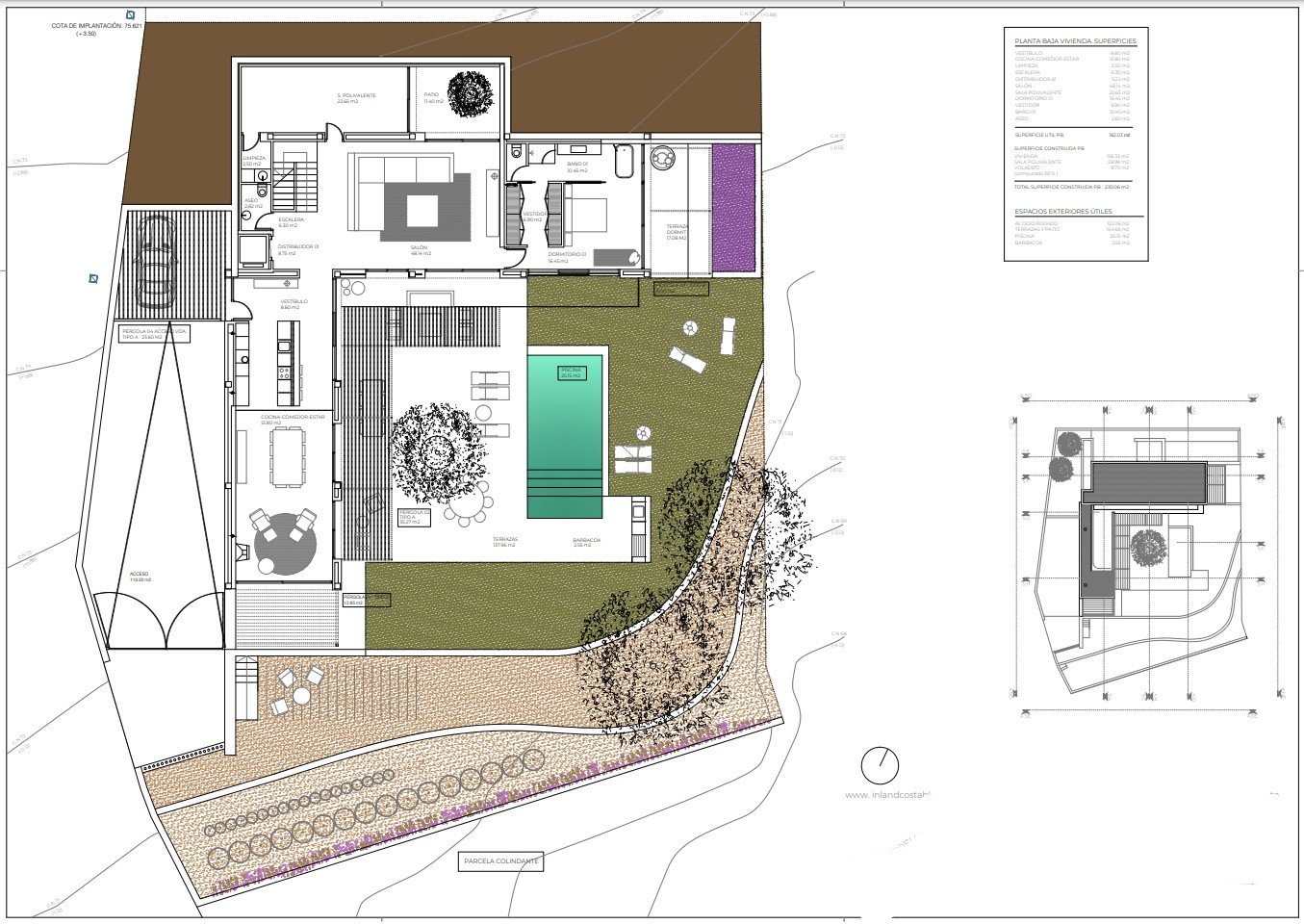 Diese wunderschöne mediterrane Neubauvilla befindet sich auf einem 1079 m2 großen Hanggrundstück, das mit einer hervorragenden Südostausrichtung übereinstimmt und einen wunderschönen Blick auf das Meer und den Peñon de Ifach bietet. Das Außergewöhnliche an diesem Grundstück ist, dass es an rustikales Land grenzt, sodass wir ein Haus auf Stadtgrundstück haben, mit dem Gefühl, in einem mediterranen Wald mit Meerblick zu leben. Es wurde beschlossen, so wenig Erde wie möglich zu bewegen und die Villa in das natürliche Relief des Grundstücks einzupassen. Das Haus ist in L-Form gestaltet, was den größtmöglichen Platz auf dem Grundstück freigibt.…