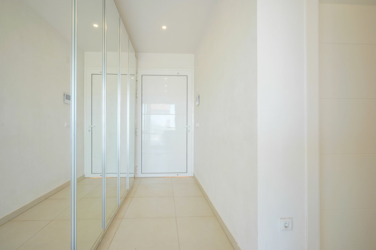 Ein automatisches Tor ermöglicht den Zugang zur Einfahrt, die zu einem Carport führt. Sie betreten eine Eingangshalle mit Einbauschränken, rechts befindet sich das Wohn-Esszimmer mit einer geräumigen modernen offenen Küche mit Kochinsel. Riesige Fenster sorgen dafür, dass Sie die atemberaubende Aussicht mit ganzem Herzen genießen können. Auf der anderen Seite der Villa befindet sich ein Doppelschlafzimmer mit eigenem Bad, ein separates Bad und ein Büro, das als zweites Schlafzimmer genutzt werden kann. Alle Zimmer haben einen wunderschönen Meerblick. Dank der Kombination aus Klimaanlage und Fußbodenheizung, die im Winter für angenehme Wärme und im Sommer für einen kühlen Fußboden sorgt, können Sie hier das ganze Jahr über sehr komfortabel wohnen. Für die Warmwasseraufbereitung wurden außerdem Solarzellen installiert. Trotz der sehr ruhigen Lage haben Sie alle Annehmlichkeiten in kurzer Entfernung. Mehrere große Supermärkte sind in nur 5 Minuten zu erreichen. Das Zentrum und der Strand des schönen Dorfes Moraira sind nur 10 Minuten entfernt. Cumbre del Sol bietet außerdem mehrere idyllische Buchten, Sportanlagen, Restaurants und eine Apotheke. Zögern Sie nicht und buchen Sie jetzt Ihren Besuch, um diese wunderbare Aussicht persönlich zu entdecken!