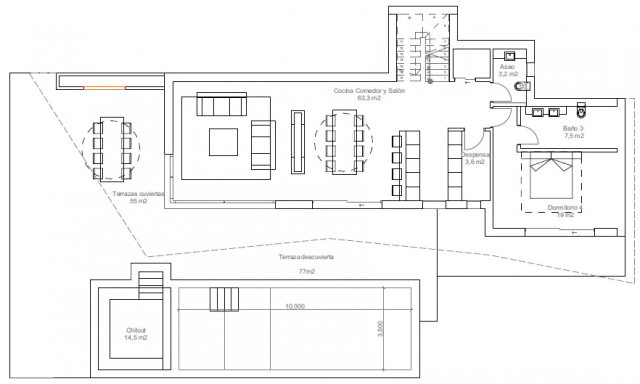Schöne moderne Luxusvilla mit Meerblick in Javea zu verkaufen. Die Immobilie ist nach Süden ausgerichtet und liegt in einer ruhigen Straße mit freiem Blick auf das Meer und das Tal. Im Erdgeschoss gibt es ein geräumiges Wohnzimmer mit einer voll ausgestatteten offenen Küche mit Hauswirtschaftsraum, ein Gäste-WC und ein Doppelschlafzimmer mit eigenem Bad. Alle Zimmer haben Zugang zu einer Terrasse und sind nach Süden ausgerichtet. Draußen gibt es eine große Terrasse, eine überdachte Terrasse und einen Swimmingpool. In der ersten Etage befinden sich 3 weitere Doppelschlafzimmer, alle mit eigenem Bad und Terrasse.