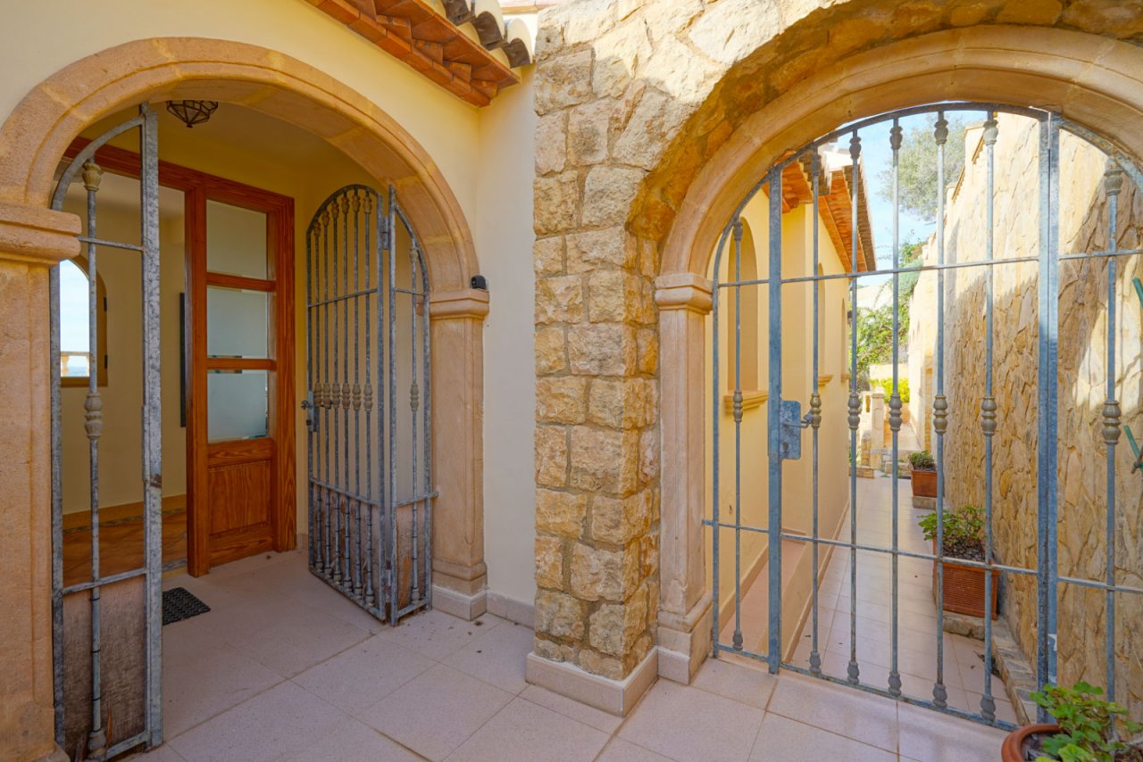 Diese traditionelle Villa befindet sich in der prestigeträchtigen Urbanisation La Corona in Javea und bietet einen atemberaubenden Blick über die azurblaue Bucht von Javea bis hin zum majestätischen Cap Negre. Genießen Sie nicht nur einen atemberaubenden Blick auf das Meer, sondern auch ein beeindruckendes Panorama auf die umliegende Berglandschaft. Dieser einzigartige 180°-Blick garantiert Ihnen jeden Morgen die schönsten Sonnenaufgänge auf der Ostseite und bezaubernde Sonnenuntergänge in den Bergen auf der Westseite. Die Villa ist elegant über drei Etagen verteilt, wobei der Pool perfekt auf dem Boden der Wohnräume liegt. In der Nähe der Straße finden Sie einen Carport und zusätzliche Parkplätze für zwei Fahrzeuge. Ein paar Stufen hinunter gelangen Sie durch den Haupteingang in die oberste Etage. Diese Etage führt zu einem großen Raum mit direktem Zugang zu einer großzügigen Terrasse mit einer überdachten Außenküche.…