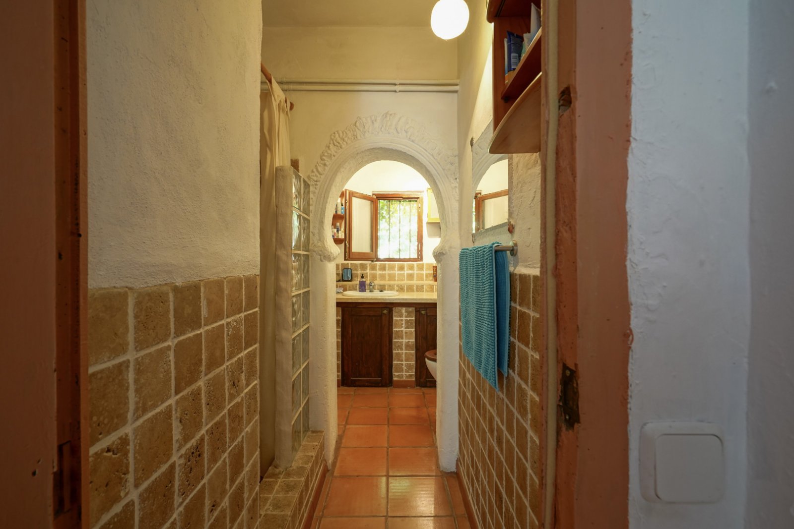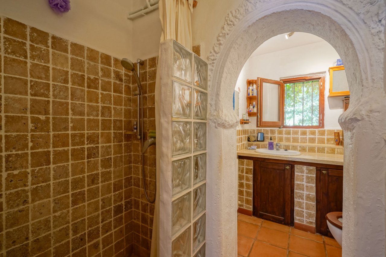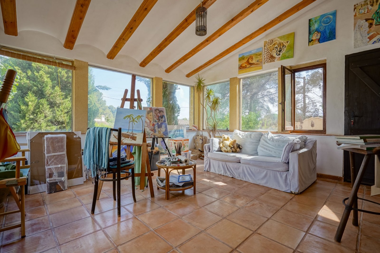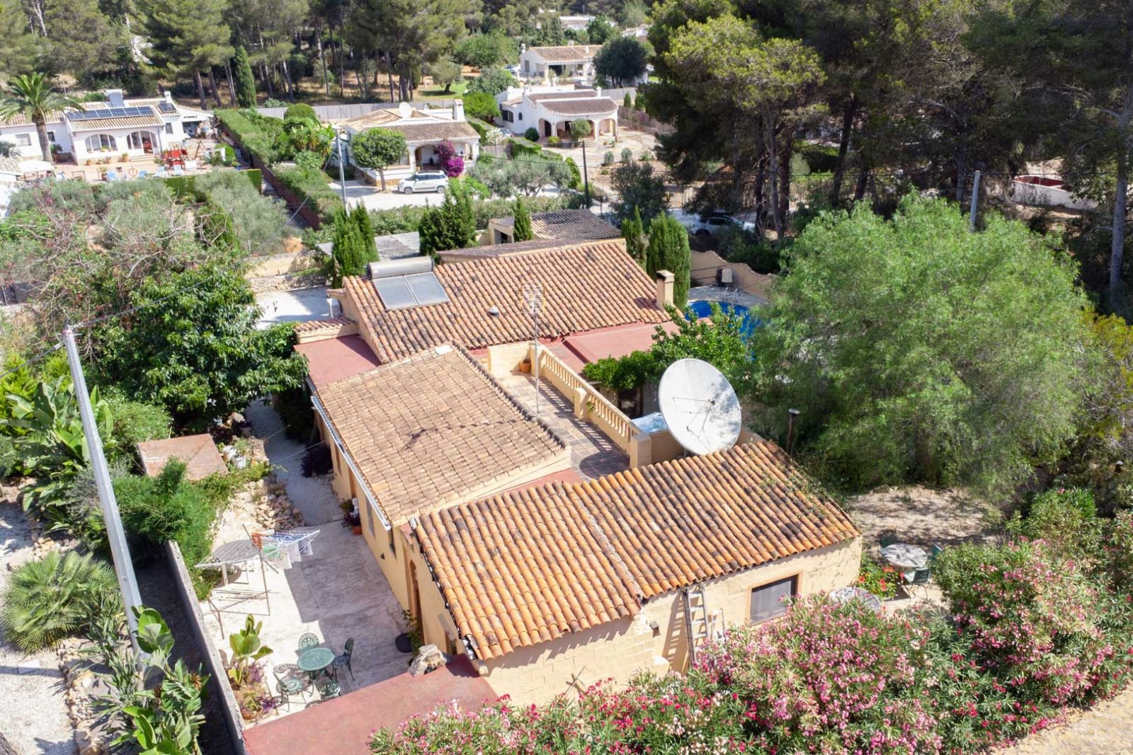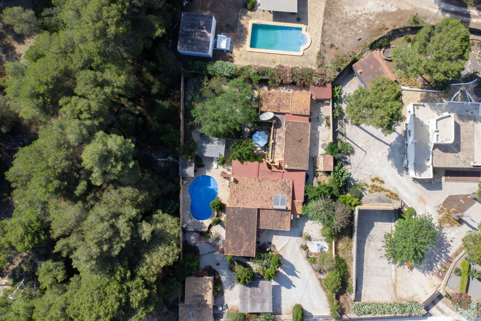 Das Anwesen besteht aus einem Wohnzimmer mit großen Fenstern, durch die Sie die schöne Aussicht auf den Montgó genießen können, einem Wohnzimmer mit Kamin, einem Esszimmer, einer Küche mit Gasherd und Elektroofen, einer Waschküche, zwei Schlafzimmern, beide mit Ankleidezimmern und verspiegelten Kleiderschränken und einem Badezimmer. Das Esszimmer bietet Zugang zu einem Patio, in dem sich ein drittes Schlafzimmer befindet. Vom Patio aus führt auch eine Treppe auf die Dachterrasse. Auf der Rückseite der Villa befindet sich ein Gästeapartment, das aus einem Wohn-Esszimmer, einer Küche, einem Schlafzimmer mit Doppelbett und einem Badezimmer besteht. Die Wohnung hat einen eigenen Eingang und eine eigene Terrasse, ideal für die Familie oder Gäste. Es gibt auch eine Garage mit einer angrenzenden Werkstatt (die in ein 5. Schlafzimmer umgewandelt werden kann) und einen Carport mit Platz für zwei Autos. An der Ostseite der Villa befindet sich ein 9x5 großer Swimmingpool mit einer umliegenden Terrasse und einem großen überdachten Essbereich mit 10 Sitzplätzen um einen marokkanischen Mosaik-Tisch. Kieswege schlängeln sich bis in die hinterste Ecke des Grundstücks, wo sich ein Fischteich und eine Bank befinden. Die Villa verfügt über eine Klimaanlage im Hauptschlafzimmer, Gasheizung, Doppelverglasung, ein isoliertes Dach, Terrakottaböden, ein elektrisches Tor und Außenbeleuchtung. Außerdem ist das gesamte Grundstück eingezäunt. Für Wanderfreunde beginnen direkt von der Villa aus Wanderwege durch den Wald, die in das Naturschutzgebiet und zu einem Aussichtspunkt führen, von dem aus Sie die gesamte Bucht von Jávea überblicken können. Das gesamte Grundstück ist eingezäunt und auf der Ostseite der Villa blicken Sie auf einen dichten Wald, der absolute Privatsphäre am Pool garantiert. Ein wahres Paradies für Naturliebhaber!