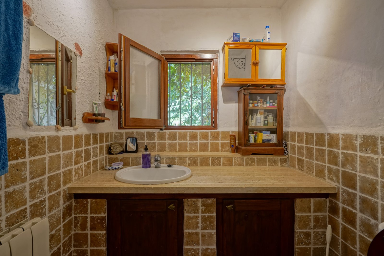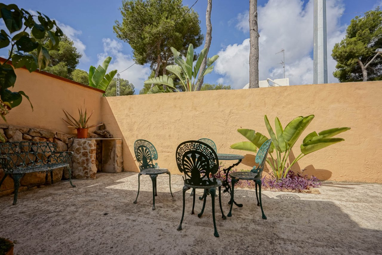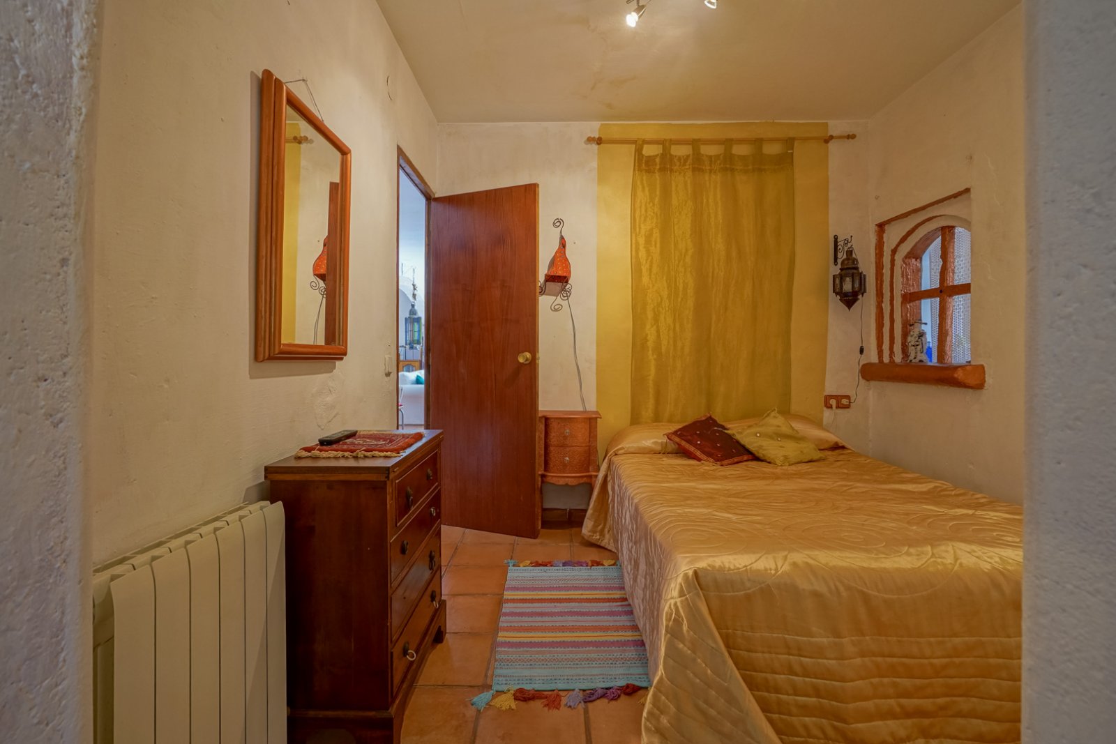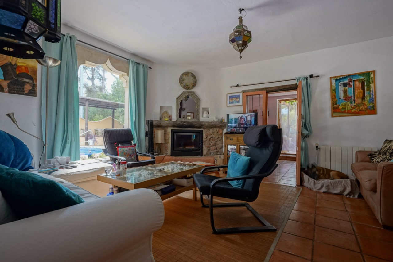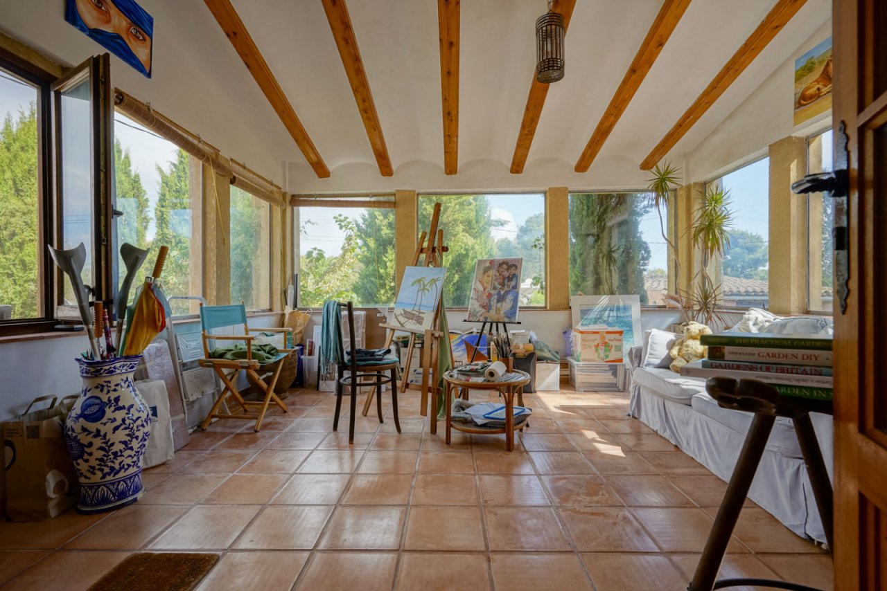 Das Anwesen besteht aus einem Wohnzimmer mit großen Fenstern, durch die Sie die schöne Aussicht auf den Montgó genießen können, einem Wohnzimmer mit Kamin, einem Esszimmer, einer Küche mit Gasherd und Elektroofen, einer Waschküche, zwei Schlafzimmern, beide mit Ankleidezimmern und verspiegelten Kleiderschränken und einem Badezimmer. Das Esszimmer bietet Zugang zu einem Patio, in dem sich ein drittes Schlafzimmer befindet. Vom Patio aus führt auch eine Treppe auf die Dachterrasse. Auf der Rückseite der Villa befindet sich ein Gästeapartment, das aus einem Wohn-Esszimmer, einer Küche, einem Schlafzimmer mit Doppelbett und einem Badezimmer besteht. Die Wohnung hat einen eigenen Eingang und eine eigene Terrasse, ideal für die Familie oder Gäste. Es gibt auch eine Garage mit einer angrenzenden Werkstatt (die in ein 5. Schlafzimmer umgewandelt werden kann) und einen Carport mit Platz für zwei Autos. An der Ostseite der Villa befindet sich ein 9x5 großer Swimmingpool mit einer umliegenden Terrasse und einem großen überdachten Essbereich mit 10 Sitzplätzen um einen marokkanischen Mosaik-Tisch. Kieswege schlängeln sich bis in die hinterste Ecke des Grundstücks, wo sich ein Fischteich und eine Bank befinden. Die Villa verfügt über eine Klimaanlage im Hauptschlafzimmer, Gasheizung, Doppelverglasung, ein isoliertes Dach, Terrakottaböden, ein elektrisches Tor und Außenbeleuchtung. Außerdem ist das gesamte Grundstück eingezäunt. Für Wanderfreunde beginnen direkt von der Villa aus Wanderwege durch den Wald, die in das Naturschutzgebiet und zu einem Aussichtspunkt führen, von dem aus Sie die gesamte Bucht von Jávea überblicken können. Das gesamte Grundstück ist eingezäunt und auf der Ostseite der Villa blicken Sie auf einen dichten Wald, der absolute Privatsphäre am Pool garantiert. Ein wahres Paradies für Naturliebhaber!
