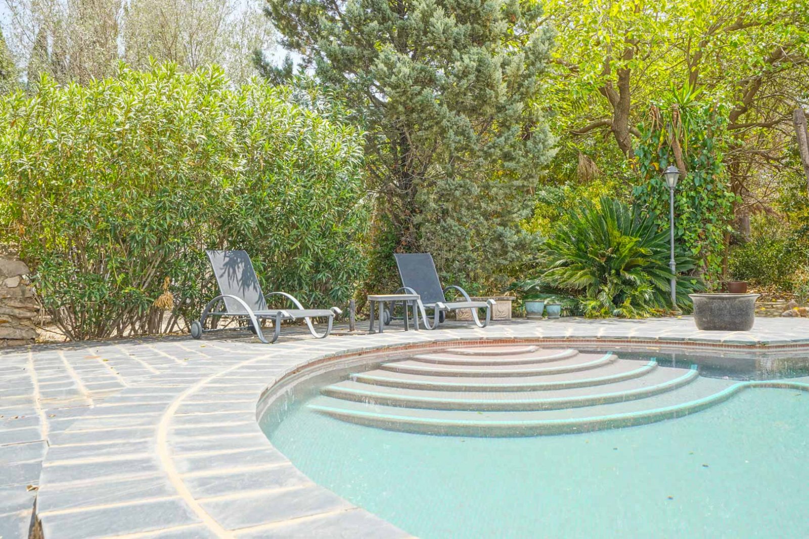 Das Erdgeschoss besteht aus einem Flur mit Bad, einer geräumigen Naya, einem Wohnzimmer, einer Küche und einem Büro. Im Obergeschoss befinden sich zwei Doppelschlafzimmer und ein Badezimmer. Von der Naya gibt es einen direkten Zugang zu einer großen Terrasse. Darüber hinaus gibt es ein zweites Mehrzweckgebäude von 156 m2, das aus einem Gästehaus (bestehend aus einem geräumigen Schlafzimmer mit Doppelbett und einem Badezimmer), einer Garage mit Platz für mehrere Autos, einem Arbeitsraum und zwei Lagerräumen besteht. Zur Villa gehört auch ein wunderschöner 33 m2 großer Swimmingpool, der 100%ige Privatsphäre genießt.