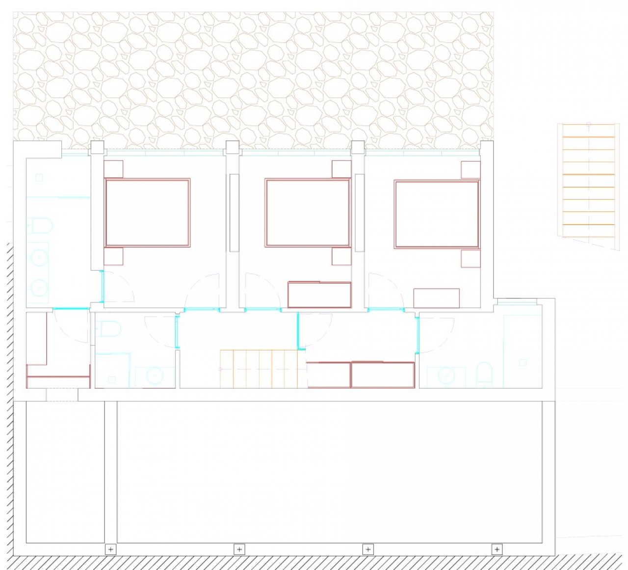 Im Erdgeschoss befinden sich drei elegante Schlafzimmer, jedes mit einem eigenen luxuriösen Bad. Alle Schlafzimmer haben direkten Zugang zur Terrasse und zum Swimmingpool. Die Villa ist mit modernen Annehmlichkeiten wie einer elektrischen Fußbodenheizung und einer Klimaanlage ausgestattet, die das ganze Jahr über für optimalen Komfort sorgen. Natürliche Materialien wie Naturstein und Holz wurden beim Bau dieser Villa kombiniert, um ein stilvolles und zeitloses Ergebnis zu erzielen.