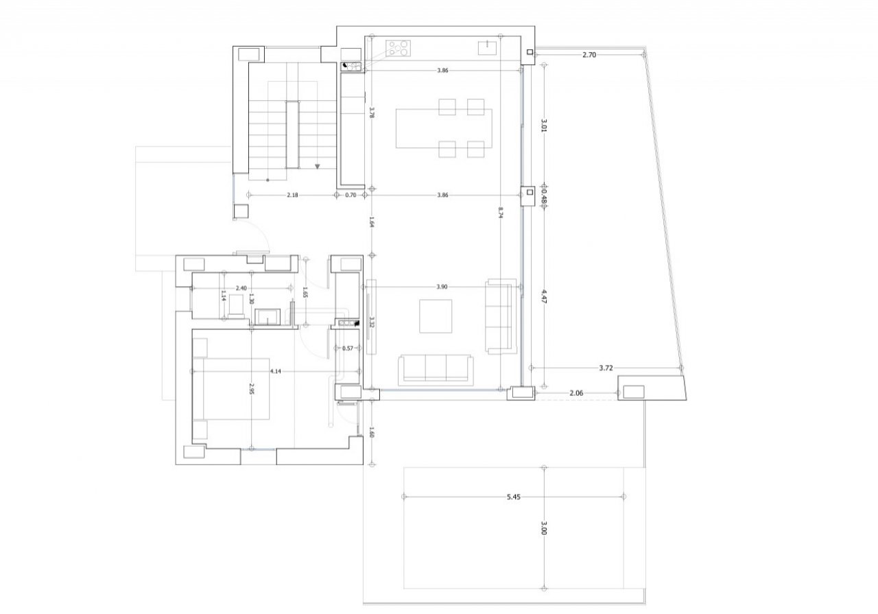 Im Erdgeschoss befindet sich eine offene Küche mit Insel, die mit Siemens-Geräten (Induktionskochfeld, Backofen, Mikrowelle, dekorativer Dunstabzugshaube, Edelstahlspüle, Doppelwaschbecken und integrierter Kühl-Gefrierkombination) und einer eleganten Porzellanarbeitsplatte ausgestattet ist. Das geräumige Wohn-Esszimmer ist mit einer großen überdachten Terrasse mit Blick auf Polop, Altea und Callosa den Sarrià verbunden. Von der Terrasse aus gelangen Sie auch direkt zu dem schönen privaten Infinity-Pool. Für zusätzlichen Komfort gibt es im Erdgeschoss ein Schlafzimmer und ein komplettes Badezimmer.…