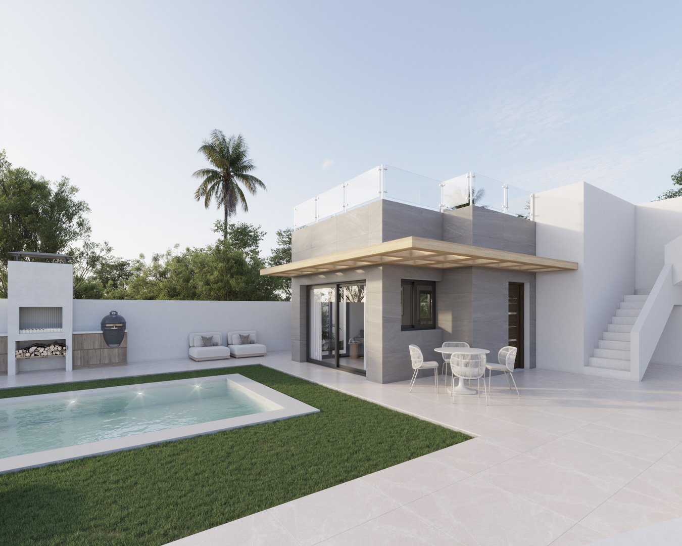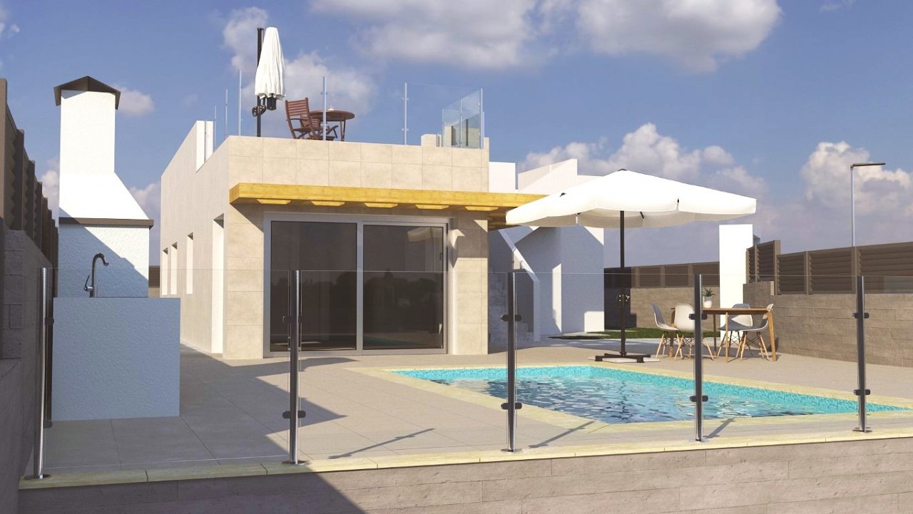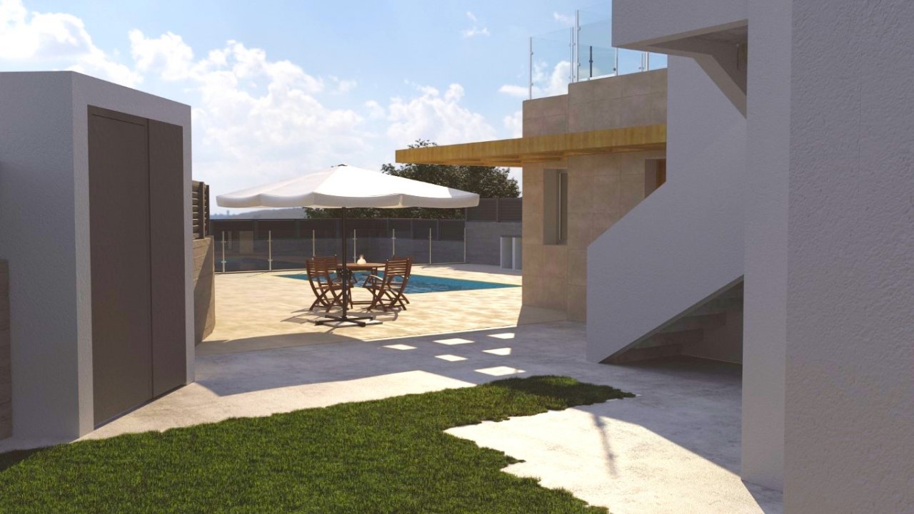 Im Außenbereich befindet sich ein privater 18 m2 großer Swimmingpool, der von einer Terrasse mit Grillplatz umgeben ist. Es gibt einen Parkplatz für zwei Autos. Die Villa verfügt über eine vorinstallierte Klimaanlage, eine Fußbodenheizung in den Bädern und eine Fotovoltaikanlage.
