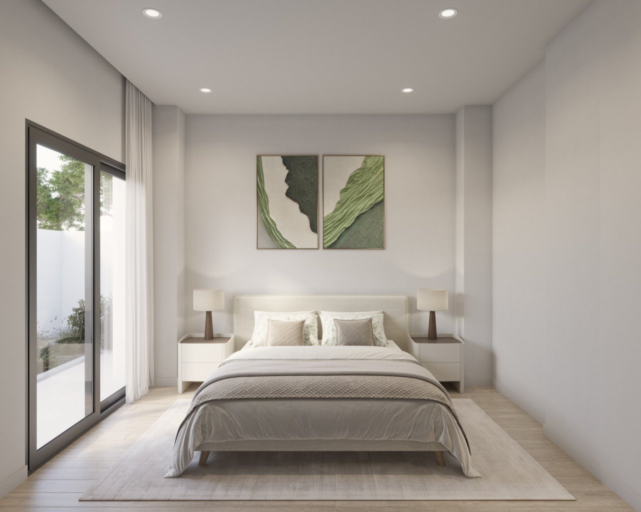 Die Villa erstreckt sich über eine Etage und besteht aus einem Wohn-Esszimmer, einer offenen Küche mit Kochinsel, einem Hauptschlafzimmer mit Bad en suite und zwei Doppelschlafzimmern, die sich ein Bad teilen. Darüber hinaus verfügt die Villa über eine 100 m2 große Sonnenterrasse, von der aus Sie den Panoramablick auf die umliegenden Berge genießen können.…