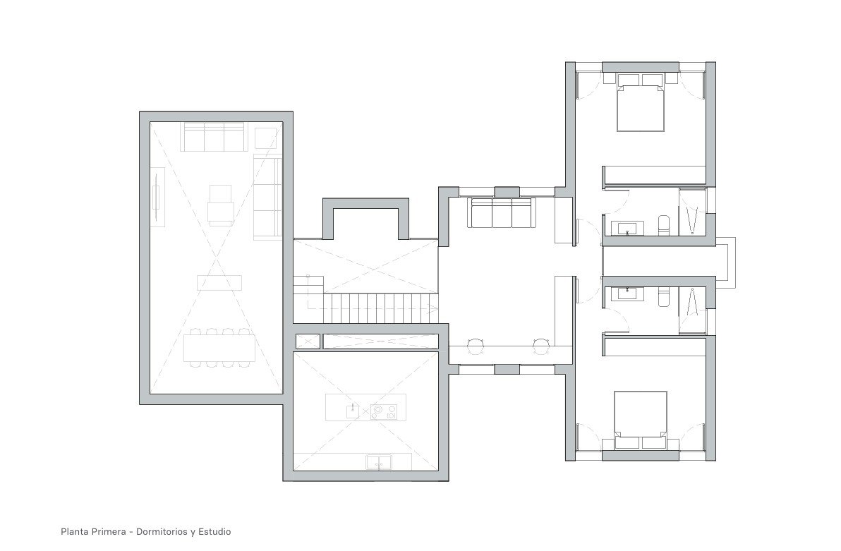 Die Villa ist über zwei Etagen + Garage im Untergeschoss verteilt. Im Erdgeschoss betritt man eine geräumige Halle, die den Wohnbereich von den Schlafräumen trennt. Auf der Südseite des Hauses befindet sich ein geräumiges Wohn-Esszimmer mit angrenzender moderner Küche mit Insel. Neben der Küche befindet sich das Gäste-WC. Die Schlafzimmer befinden sich auf der Nordseite der Villa. Im Erdgeschoss befindet sich das Hauptschlafzimmer mit einem geräumigen Badezimmer mit Badewanne, Dusche und Doppelwaschbecken und ein zweites Doppelschlafzimmer mit einem Badezimmer en suite. Im Flur gibt es eine weitere Waschküche und eine Treppe zum Obergeschoss und zum Keller. Das Obergeschoss besteht aus zwei Doppelschlafzimmern, jedes mit eigenem Bad und einem geräumigen Büro. Im Untergeschoss befinden sich eine Doppelgarage und ein Badezimmer.…