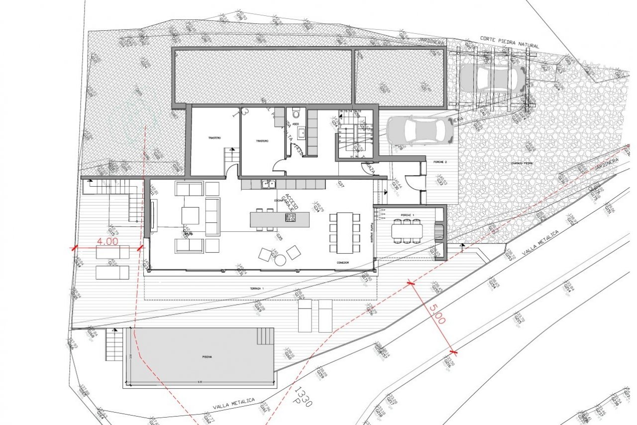 Auf dem Grundstück befindet sich derzeit eine traditionelle Villa mit einer bebauten Fläche von 117 m². Für dieses Grundstück gibt es drei interessante Entwicklungsmöglichkeiten: