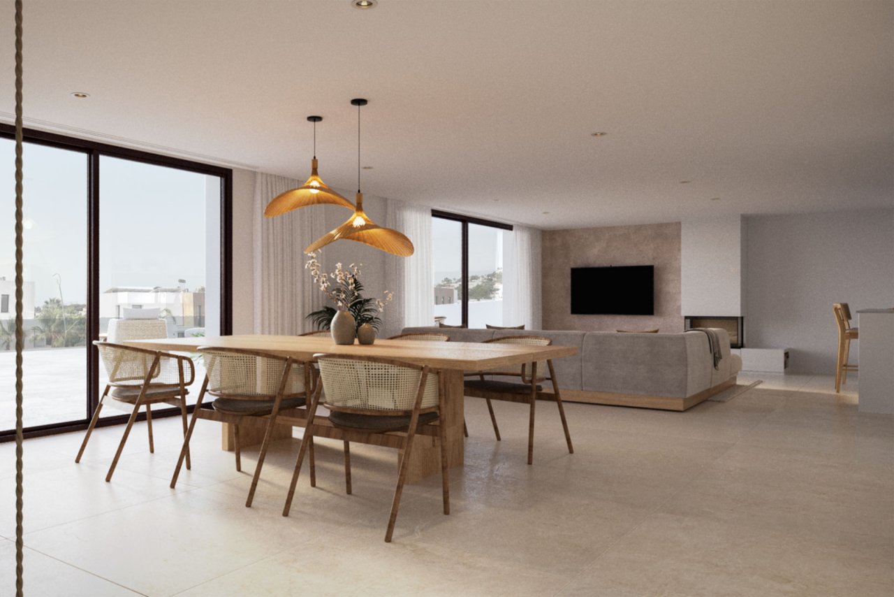 Die Villa wurde mit einem offenen Grundriss entworfen, der Geräumigkeit, natürliches Licht und ein konstantes Gefühl der Ruhe vermittelt. Warme Materialien und natürliche Details verleihen jedem Winkel Charakter und Harmonie.