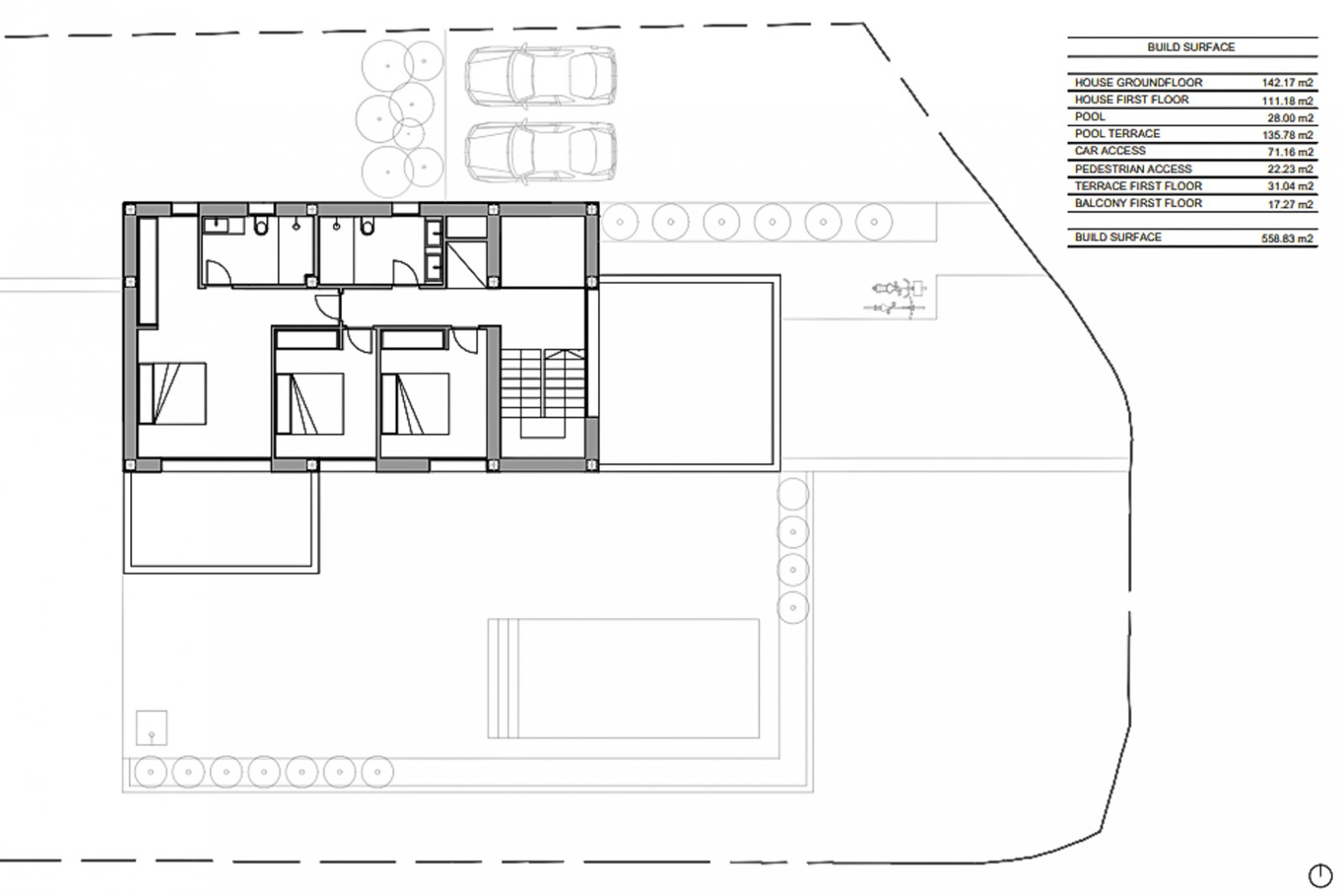 Das Anwesen verfügt über drei komfortable Schlafzimmer und zwei elegante Badezimmer. Die Master-Suite verfügt über ein eigenes Bad und direkten Zugang zu einer großen Terrasse mit Meerblick, ideal, um den Tag in Ruhe zu beginnen. Die anderen Schlafzimmer sind ebenso geräumig und bieten eine gemütliche Atmosphäre für Familienmitglieder oder Gäste.