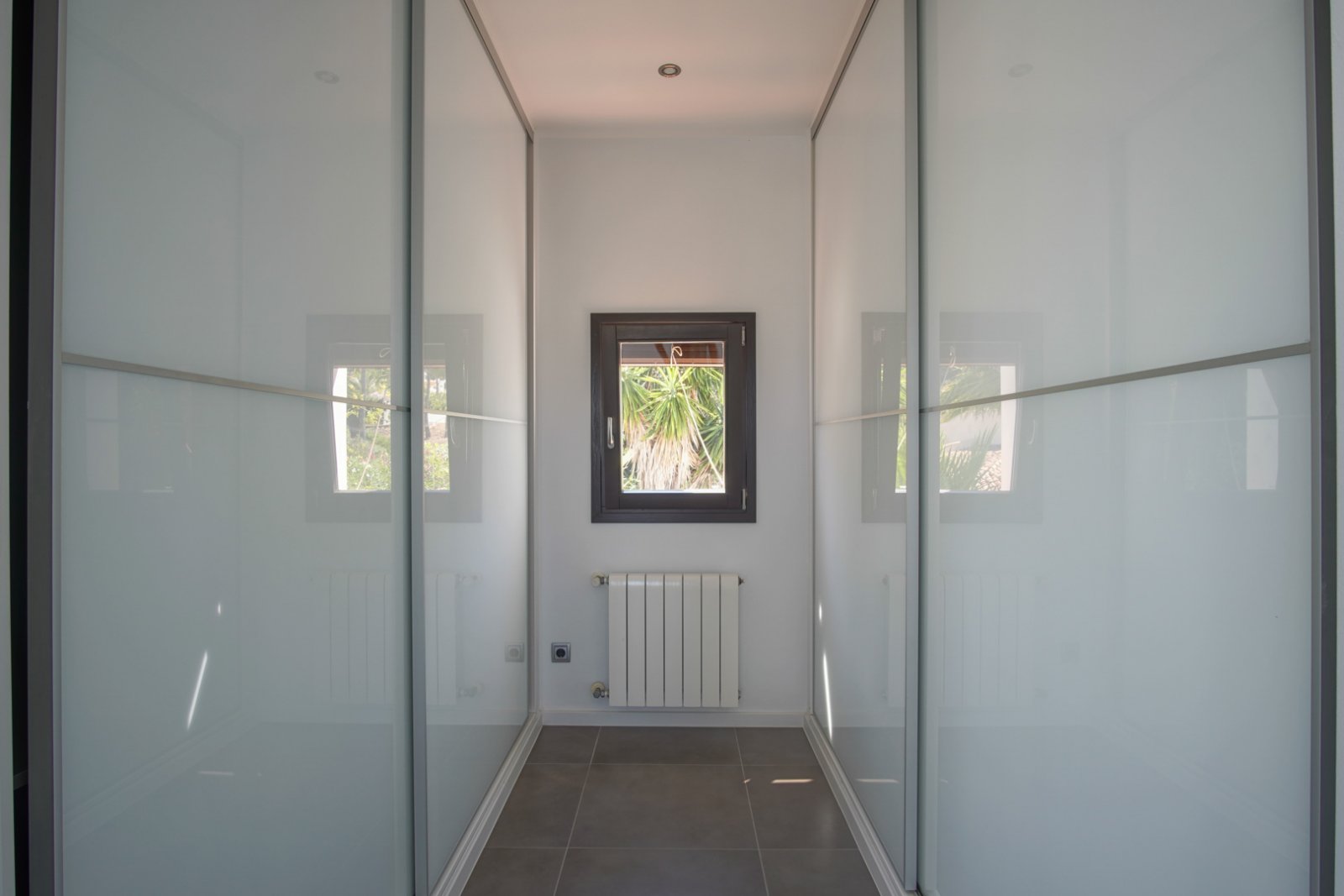 Auf derselben Etage befindet sich eine Einliegerwohnung, die zwar mit dem Innenbereich verbunden ist, aber über einen separaten Eingang verfügt und sich ideal als Gästeunterkunft oder auch als Master-Suite eignet. Dieser Raum bietet ein komfortables Wohn-Esszimmer, das auch als Schlafzimmer genutzt werden kann, ein zweites Schlafzimmer, ein Badezimmer und einen zusätzlichen Bereich, der als Küche oder Ankleidezimmer genutzt werden kann, ebenfalls mit den notwendigen Vorinstallationen. Der Eingang zu dieser Wohnung verfügt über eine wunderschön restaurierte antike Holztür, die eine unverwechselbare und authentische Note verleiht. Das Obergeschoss, das über eine Innentreppe erreichbar ist, beherbergt zwei Schlafzimmer, ein Badezimmer und eine Sonnenterrasse mit Meerblick, perfekt zum Entspannen oder Genießen der Sonnenuntergänge. Alle Haupträume des Hauses bieten einen Blick auf das Meer, die Gartenbereiche und den Pool, was das Gefühl verstärkt, in einer privaten Oase zu sein. Der pflegeleicht angelegte Garten verfügt über ein automatisches Bewässerungssystem. Das Anwesen verfügt außerdem über einen Parkplatz auf dem Grundstück mit einem motorisierten Schiebetor für Fahrzeuge und einem separaten Fußgängereingang. Zu den Ausstattungsmerkmalen zählen die Aluminiumfenster in Holzoptik mit Doppelverglasung, Jalousien und Moskitonetze in den Schlafzimmern (im Obergeschoss motorisiert), Einbauschränke mit Schiebetüren, Heizkörperheizung und warme, regulierbare Beleuchtung in Böden und Decken. Ein Anwesen mit Seele, perfekt für alle, die Ruhe, Meerblick und den unverwechselbaren Charme des Mittelmeers suchen.