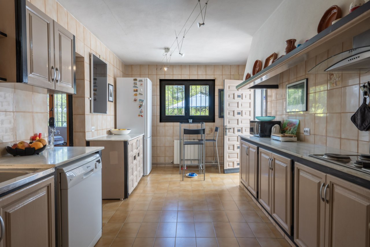 Im Obergeschoss befindet sich das Hauptschlafzimmer mit eigenem Bad. Das Untergeschoss bietet ein zusätzliches Zimmer mit Gäste-WC sowie einen Abstellraum, der bereits über Anschlüsse für eine Küche verfügt und somit leicht in eine eigenständige Wohnung umgewandelt werden kann. Zudem gibt es direkten Zugang zur Garage mit Platz für zwei Fahrzeuge; auf Wunsch könnten hier weitere Räume geschaffen werden. Angrenzend befindet sich eine überdachte Terrasse mit Blick auf den nach Süden ausgerichteten Pool mit beeindruckenden Fläche von 53 m2. Zusätzlich zur Garage stehen auf dem Grundstück mehrere Parkplätze zur Verfügung.
