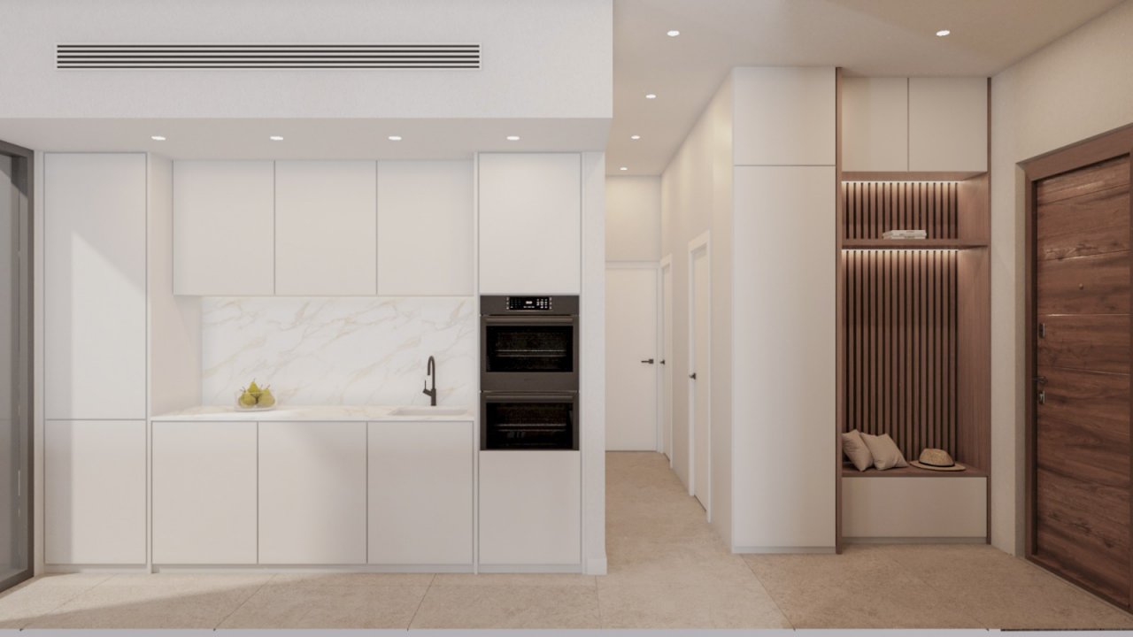 Die Villen werden mit einer voll ausgestatteten offenen Küche mit BOSCH-Einbaugeräten, Granitarbeitsplatte und einer Kochinsel mit Induktionskochfeld ausgestattet. Die Badezimmer werden mit hochwertigen Badezimmermöbeln der Marke Porcelanosa und einer modernen Regendusche ausgestattet.