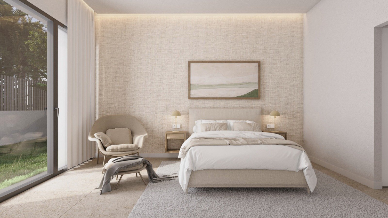 Die Villen werden mit einer voll ausgestatteten offenen Küche mit BOSCH-Einbaugeräten, Granitarbeitsplatte und einer Kochinsel mit Induktionskochfeld ausgestattet. Die Badezimmer werden mit hochwertigen Badezimmermöbeln der Marke Porcelanosa und einer modernen Regendusche ausgestattet.