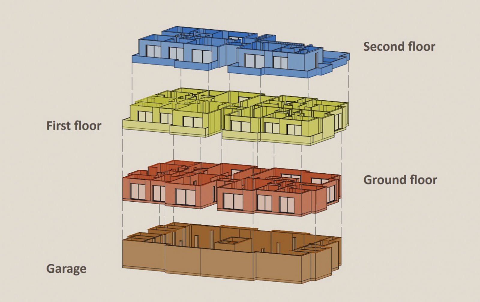 Die Wohnungen im ersten Stock haben zusätzlich drei bis vier Terrassen.