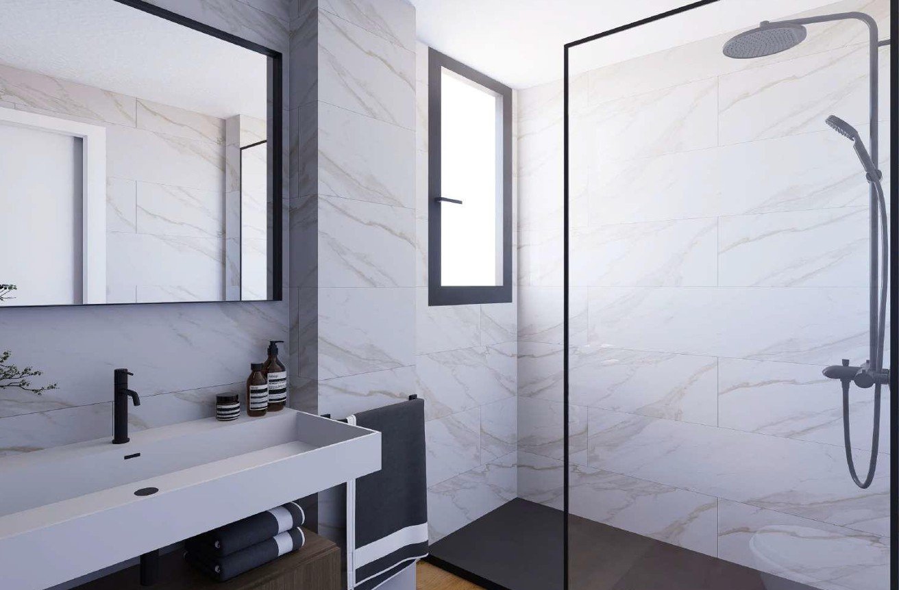 Die Wohnung verfügt über Einbauschränke, elektrische Rollläden in den Schlafräumen und doppelt verglaste PVC-Fenster. Um das ganze Jahr über eine angenehme Temperatur zu gewährleisten, sind sowohl eine Fußbodenheizung als auch eine Klimaanlage warm/kalt auf der Basis einer energieeffizienten Wärmepumpe installiert. Die Immobilie ist außerdem mit einer Video-Gegensprechanlage für zusätzliche Sicherheit und Komfort ausgestattet. Die Wohnanlage besteht aus drei modernen Gebäuden mit unterschiedlichen Wohnungstypen, die von Wohnungen mit Garten im Erdgeschoss über Wohnungen mit Terrasse im ersten Stock bis hin zu den exklusiven Duplex-Penthäusern im zweiten Stock reichen. Für die Gestaltung Ihrer Wohnung können Sie zwischen drei Stilen wählen: Contemporary, Timeless oder Nature. Die verwendeten Putze spiegeln den zeitgenössischen Stil Contemporary wider.