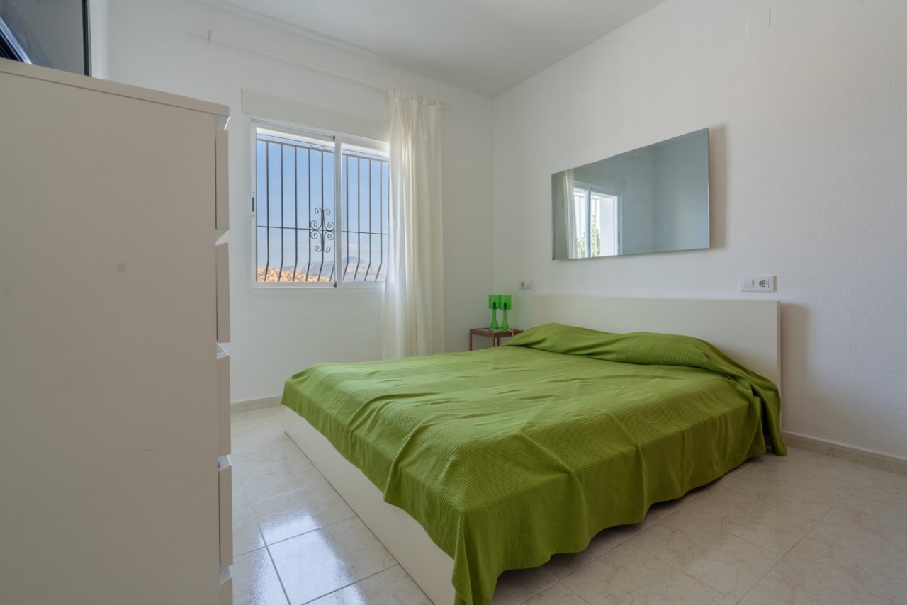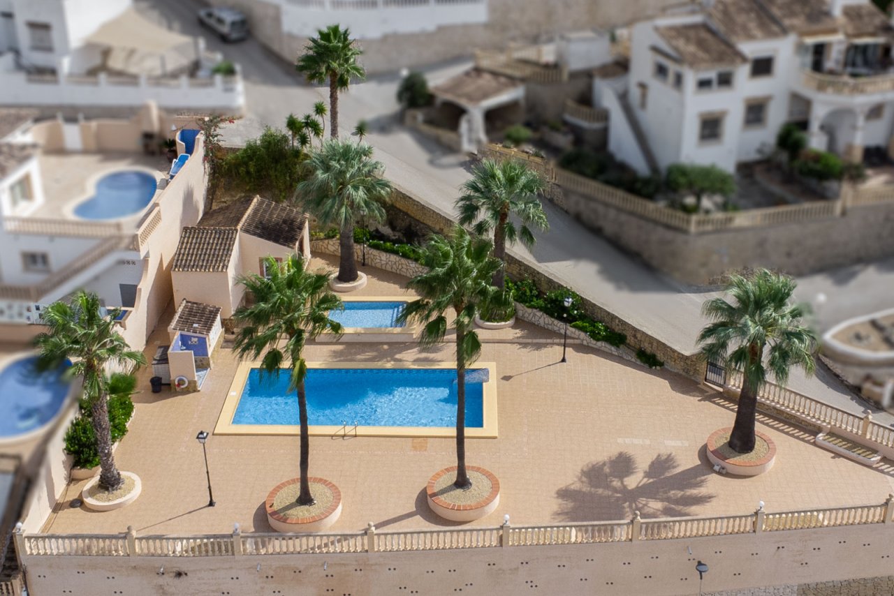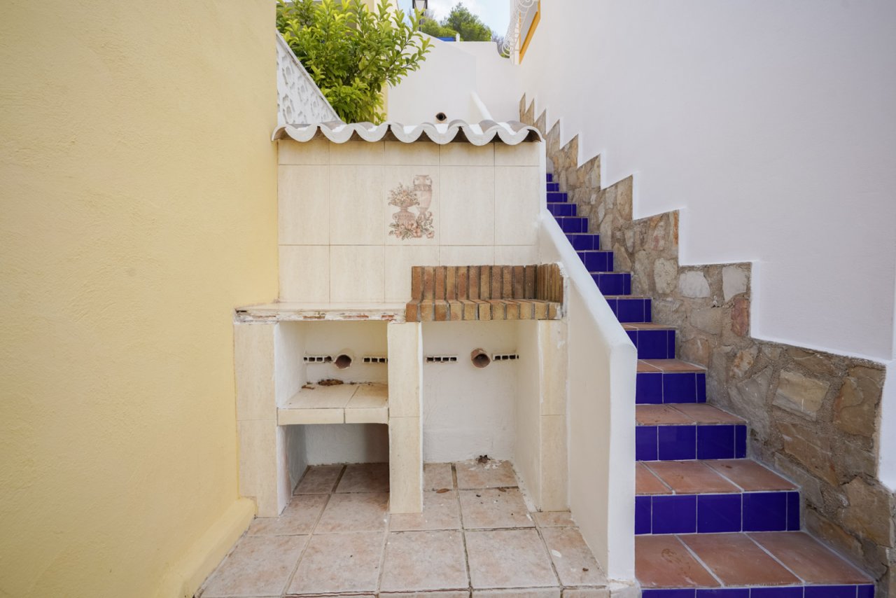 Diese Doppelhaushälfte liegt in einer Sackgasse in der ruhigen Urbanisation Las Mimosas, Calistros, und bietet einen weiten Blick über das Tal von Benitachell bis zum Montgó.