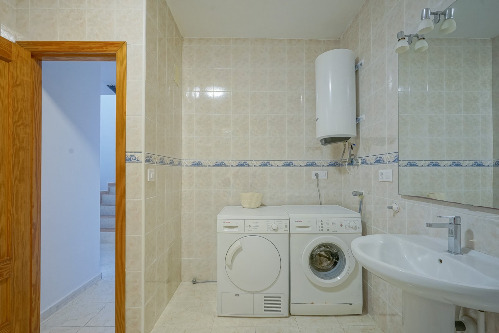Im Erdgeschoss befindet sich ein pflegeleichter Garten mit Grillplatz und einem Abstellraum. Darüber hinaus verfügt die Villa über einen Parkplatz vor dem Haus und Zugang zum Gemeinschaftspool, der nur 40 m entfernt ist.