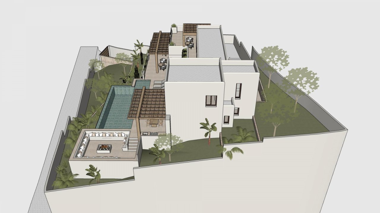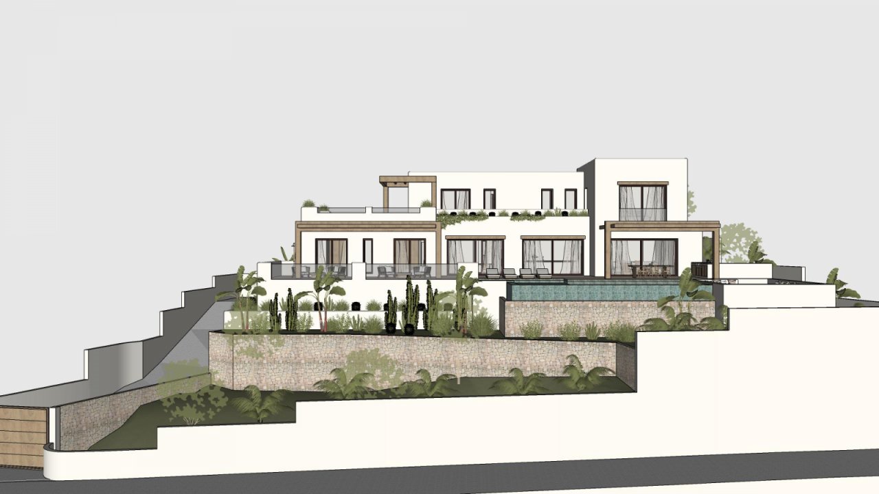 Für den Bau dieser Villa werden ausschließlich Materialien von höchster Qualität verwendet. Die Innen- und Außenwände erhalten einen eleganten Putz im Ibiza-Stil mit integrierten Sockelleisten für ein nahtloses Erscheinungsbild. Die Fenster und Schiebetüren sind von der Marke TECHNAL, Modell SOLEAL, mit versenkten Profilen und elektrischen Rollläden in allen Schlafzimmern. Im Innenbereich sorgen Fußbodenheizung und kanalisierte Klimaanlage für optimalen Komfort das ganze Jahr über.