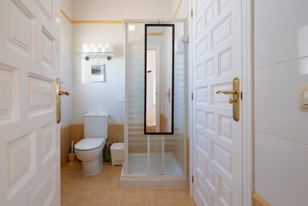 Der Hauptwohnbereich befindet sich im Obergeschoss und besteht aus einem großzügigen Wohn- und Esszimmer mit Kamin, einer geräumigen Küche mit Hauswirtschaftsraum, einem Schlafzimmer mit en-suite Badezimmer, einem Büro sowie einem zweiten Badezimmer. Angrenzend an das Wohnzimmer befindet sich eine Naya mit Zugang zu einer großzügigen Sonnenterrasse. Vom Büro aus führt eine Treppe in das Untergeschoss, wo sich auch ein Abstellraum befindet. Darüber hinaus gibt es auf dieser Ebene ein geräumiges Gästeapartment mit separatem Eingang, bestehend aus Wohn- und Esszimmer, Küche, Hauswirtschaftsraum, zwei Doppelschlafzimmern und zwei Badezimmern. Auf dieser Etage befindet sich auch der Pool, umgeben von einer großen, teilweise überdachten Terrasse. Die Villa ist mit Zentralheizung über Radiatoren und Klimaanlage warm/kalt ausgestattet.
