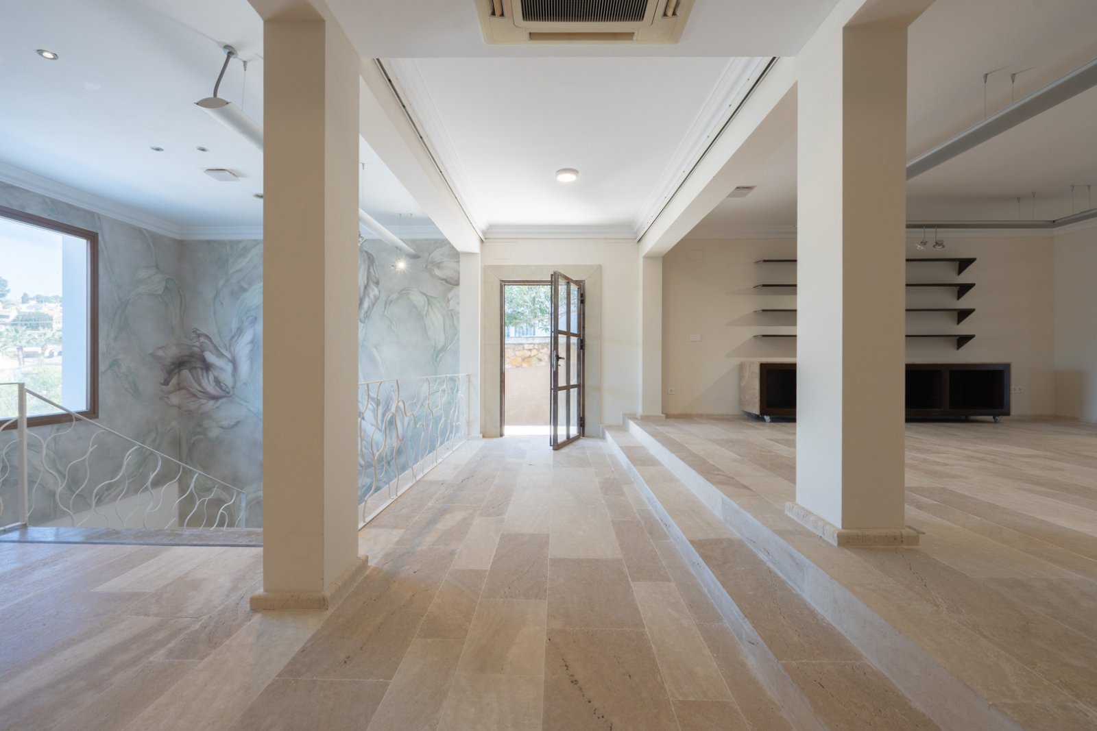 Das Erdgeschoss besteht aus einer großzügigen Eingangshalle, einem Empfangsbereich, zwei Räumen, einem Gäste-WC und zwei Abstellräumen.